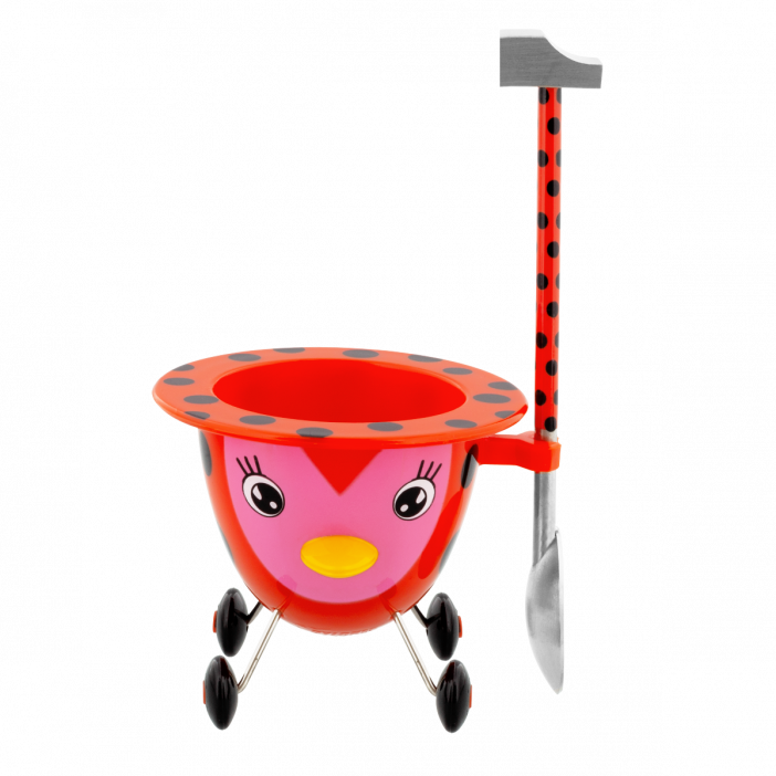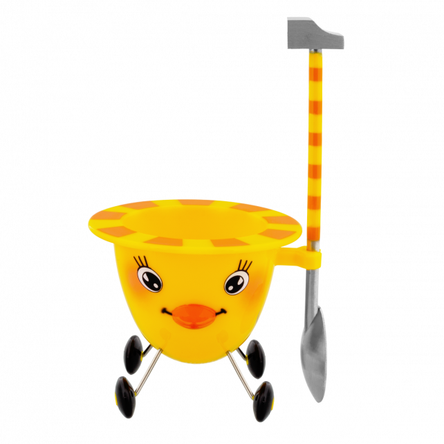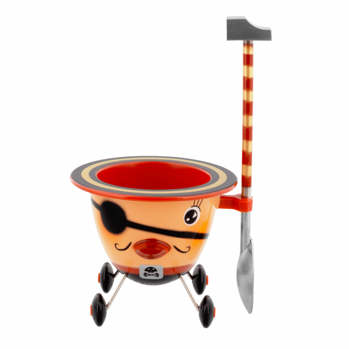 Détails : Casser l’œuf grâce au marteau et utiliser la cuillère pour la dégustation.